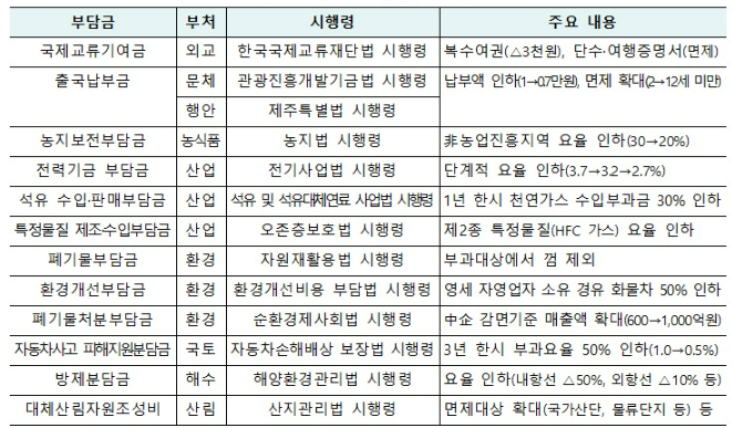 변경되는 주요 부담금 종류 및 감면내용