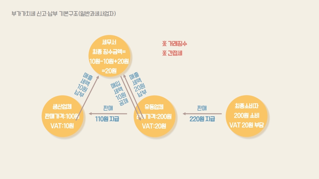 지금까지 부가세의 기본구조와 사업자와 최종소비자 간의 상관관계에 대해서 알아보았습니다.