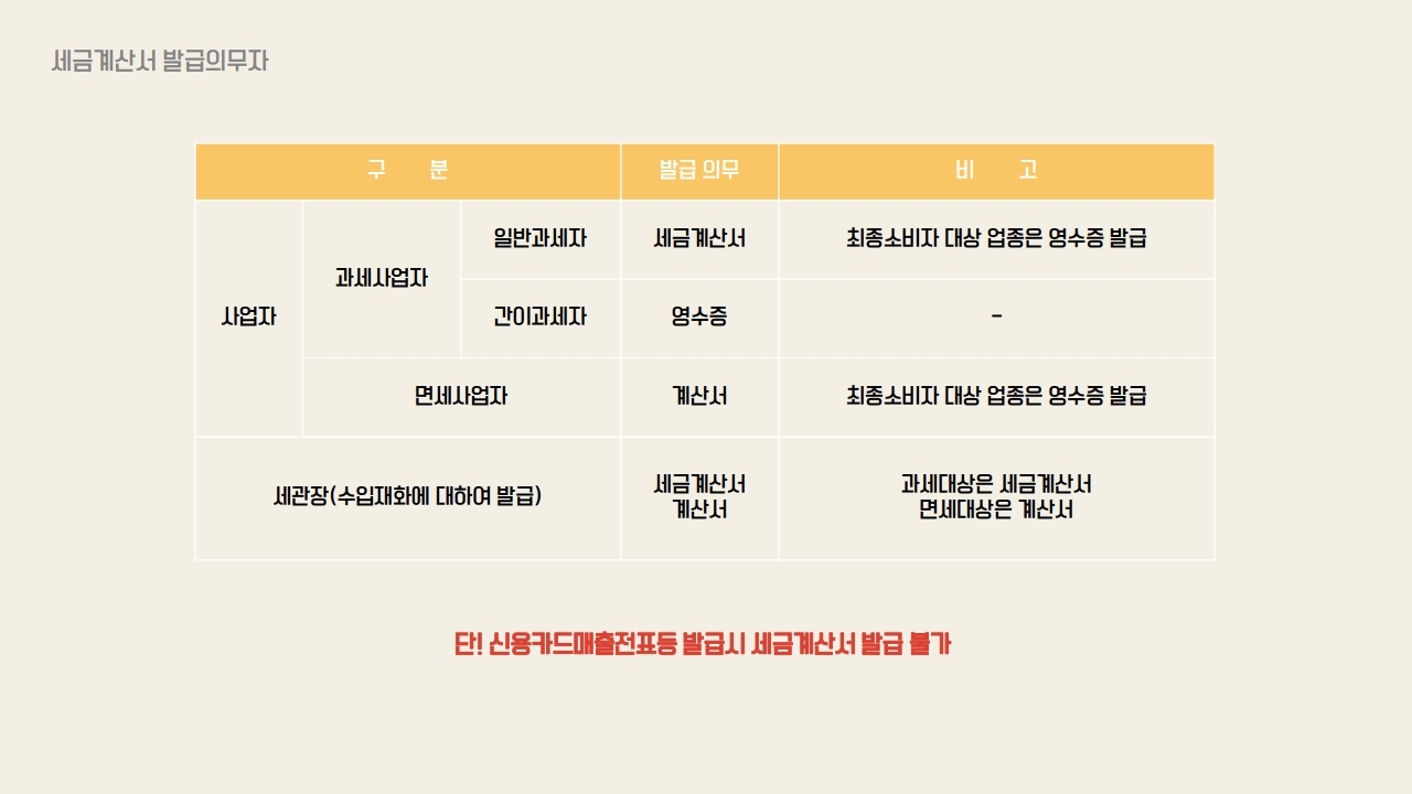 세금계산서는 거의 모든 거래에 대해 그리고 사업자들에게 발급의무가 주어집니다. 개인사업자도 똑같이 해당됩니다.